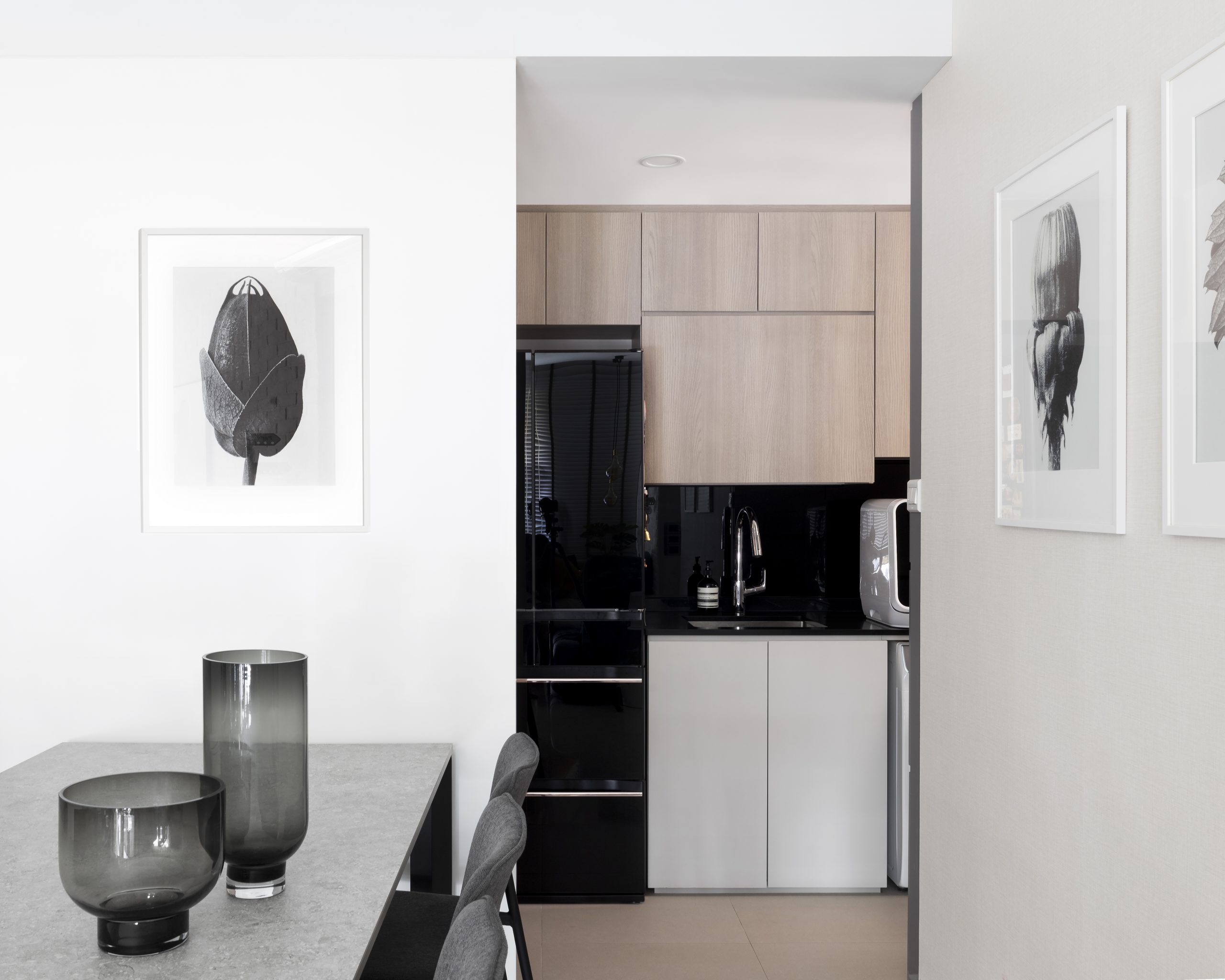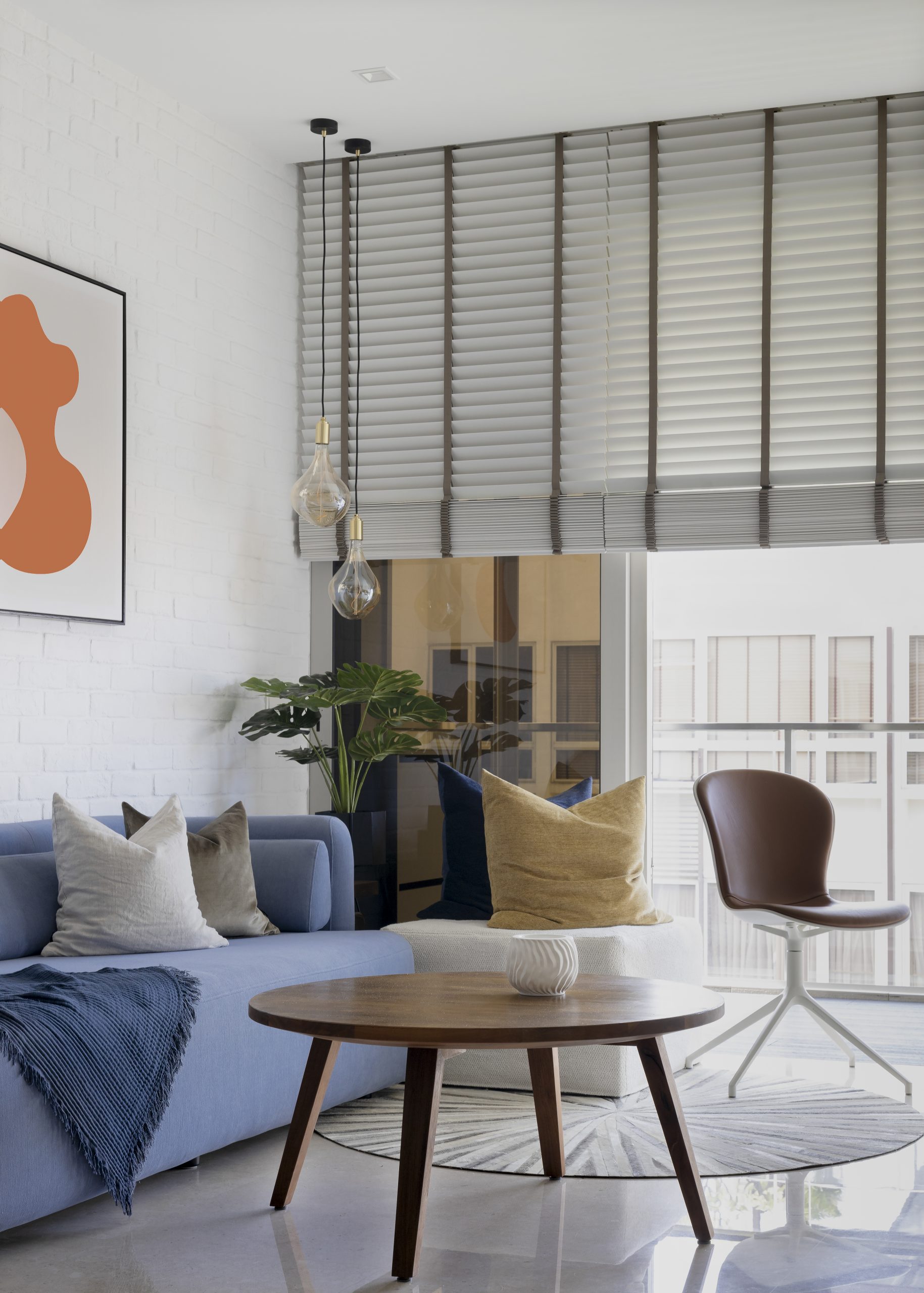 In the living and dining zones, warm neutrals are paired with touches of slate, wood and muted blues, giving the home a grounded yet uplifting personality. Subtle textures—rippled glass, matte cabinetry, layered textiles—introduce dimension while maintaining the home’s minimalist character. Carefully curated décor and art pieces soften the modern lines, adding warmth and a personal sense of identity.