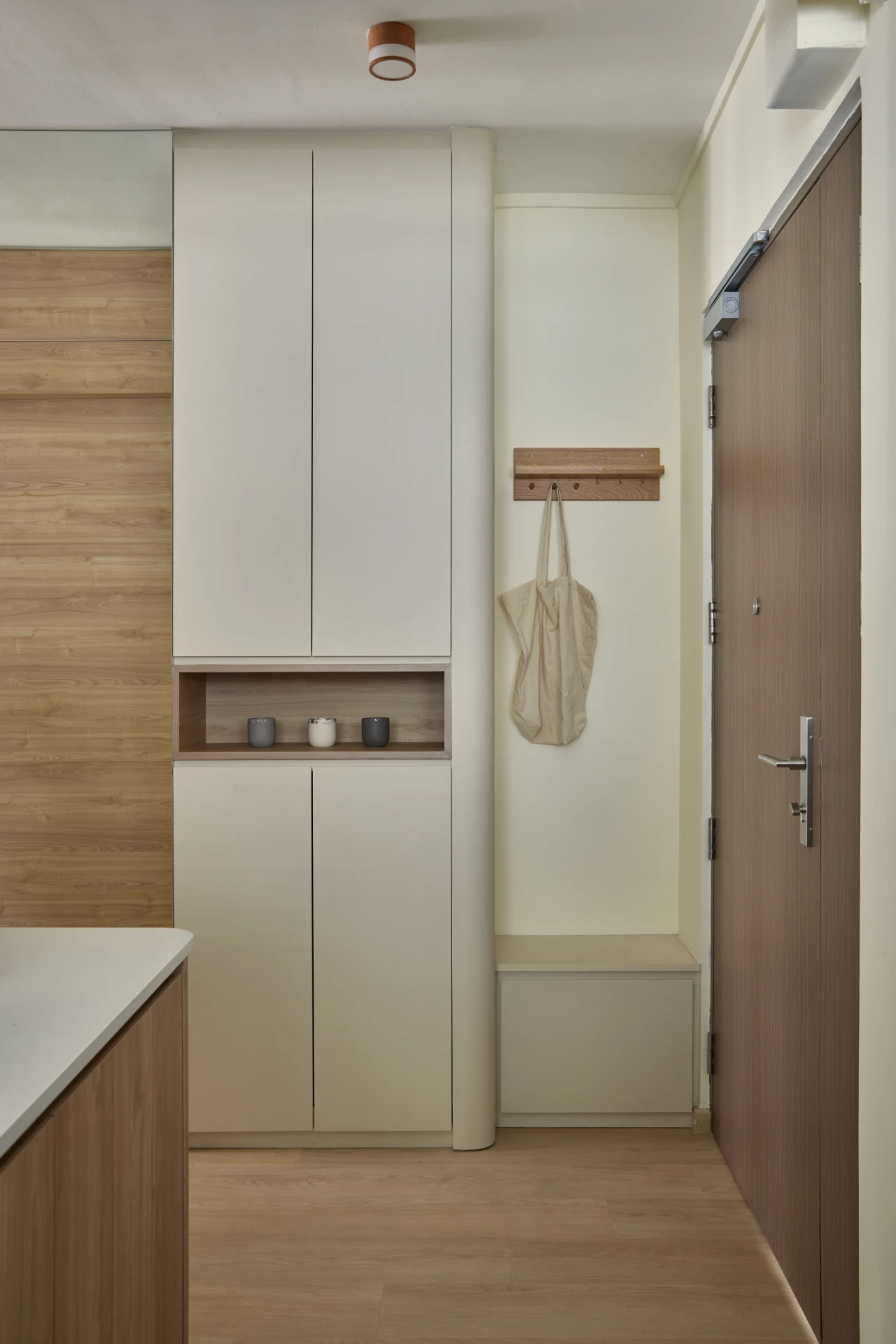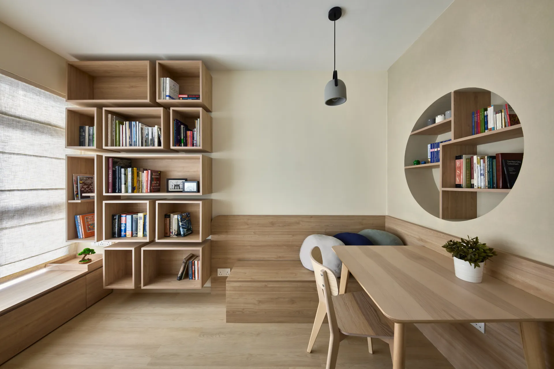 Despite the home’s small footprint, careful planning of storage, lighting, and built-ins delivers a sense of openness, rhythm, and quiet clarity — a BTO interior design that transforms yourt home into a retreat for slow living in a fast-paced city.