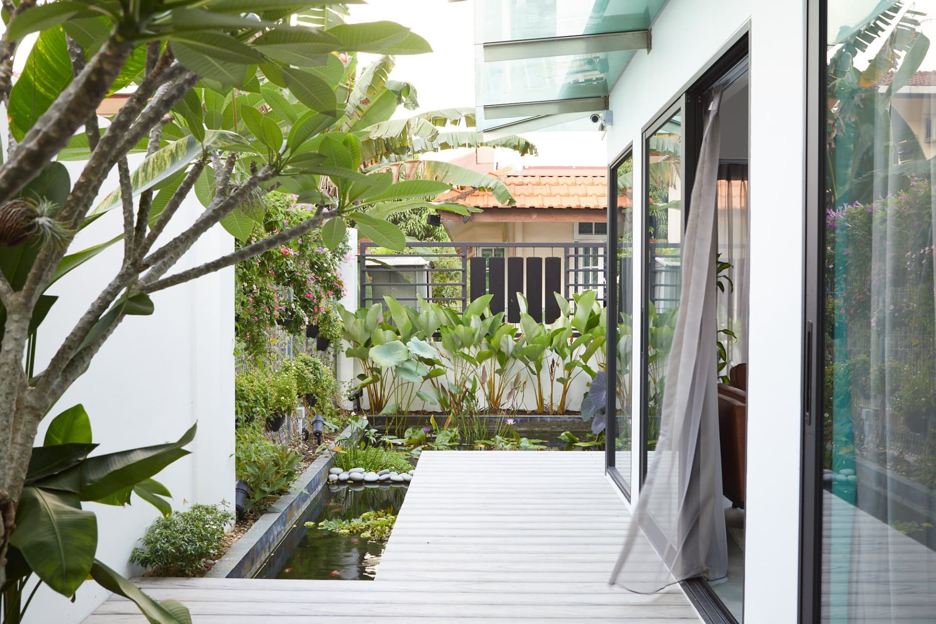 Even the home’s outdoor areas were designed with restraint — clean lines and glass accents create a modern, minimalist exterior that reflects the home’s cohesive style.
